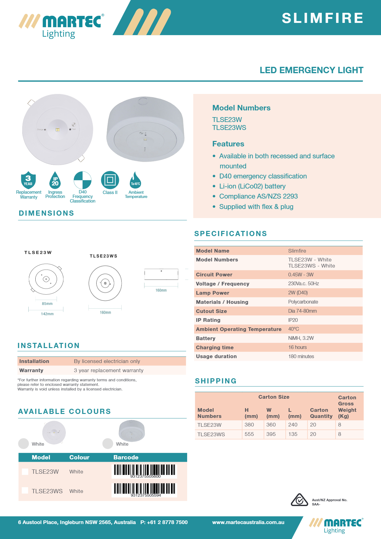 #Slimfire #EmergencyLighting #ASNZS2293 #CeilingLight #SurfaceMount #RecessedLighting #TLSE23W #TLSE23WS #SafetyCompliant #LED