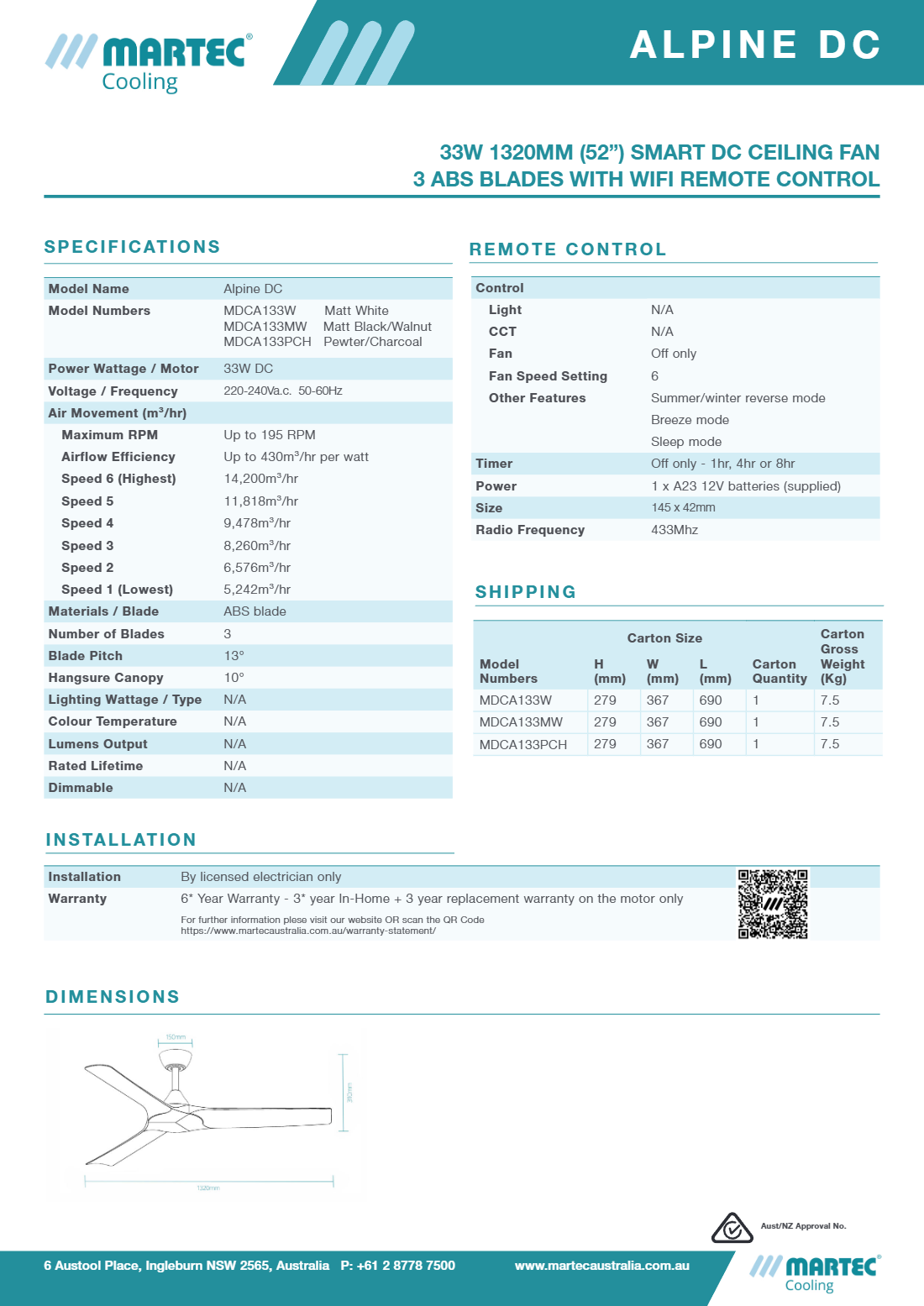 Alpine DC 52″ Smart Ceiling Fan With WiFi Remote Control