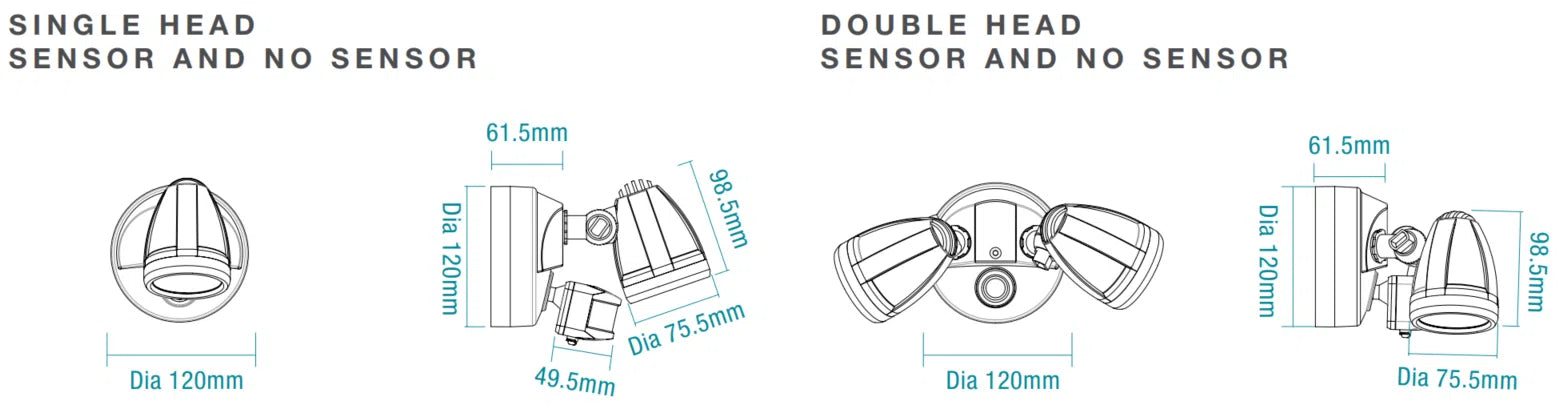 Bandit Tricolour LED Security  Double Head Matt Black or White