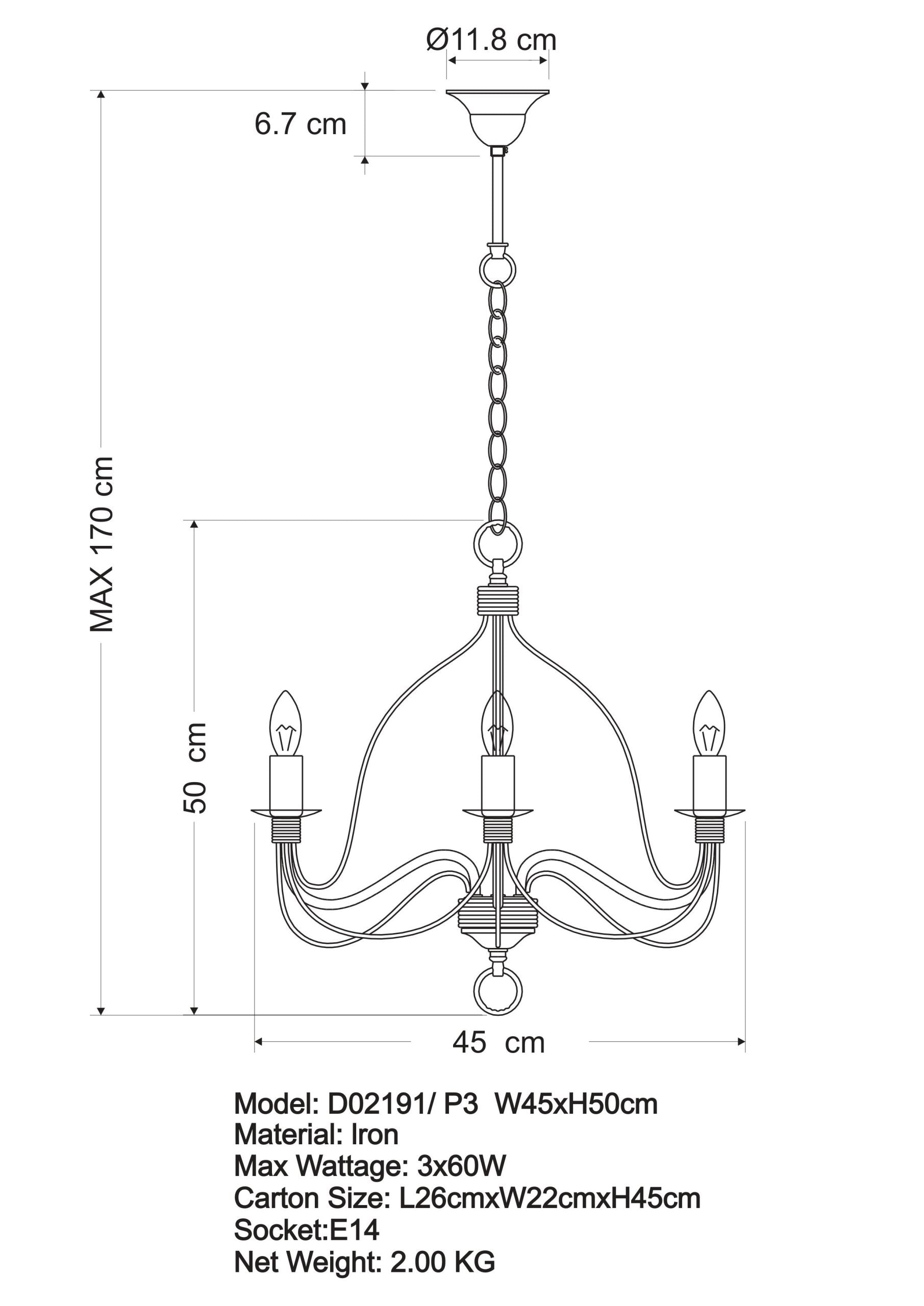 🔸 Bulb Type: E14 (small Edison screw) – 3 x 60W max