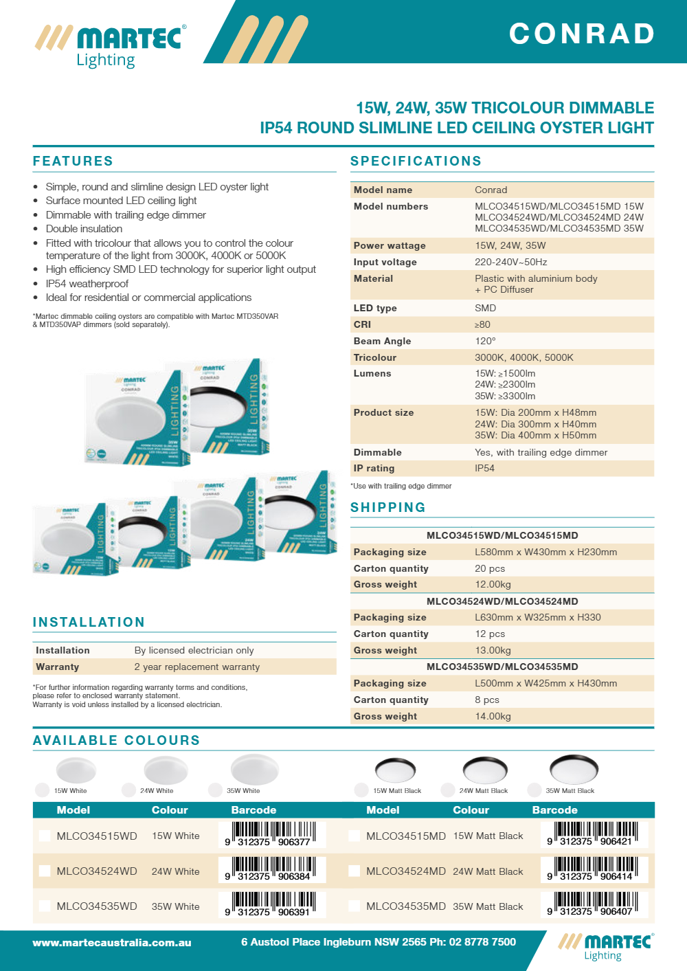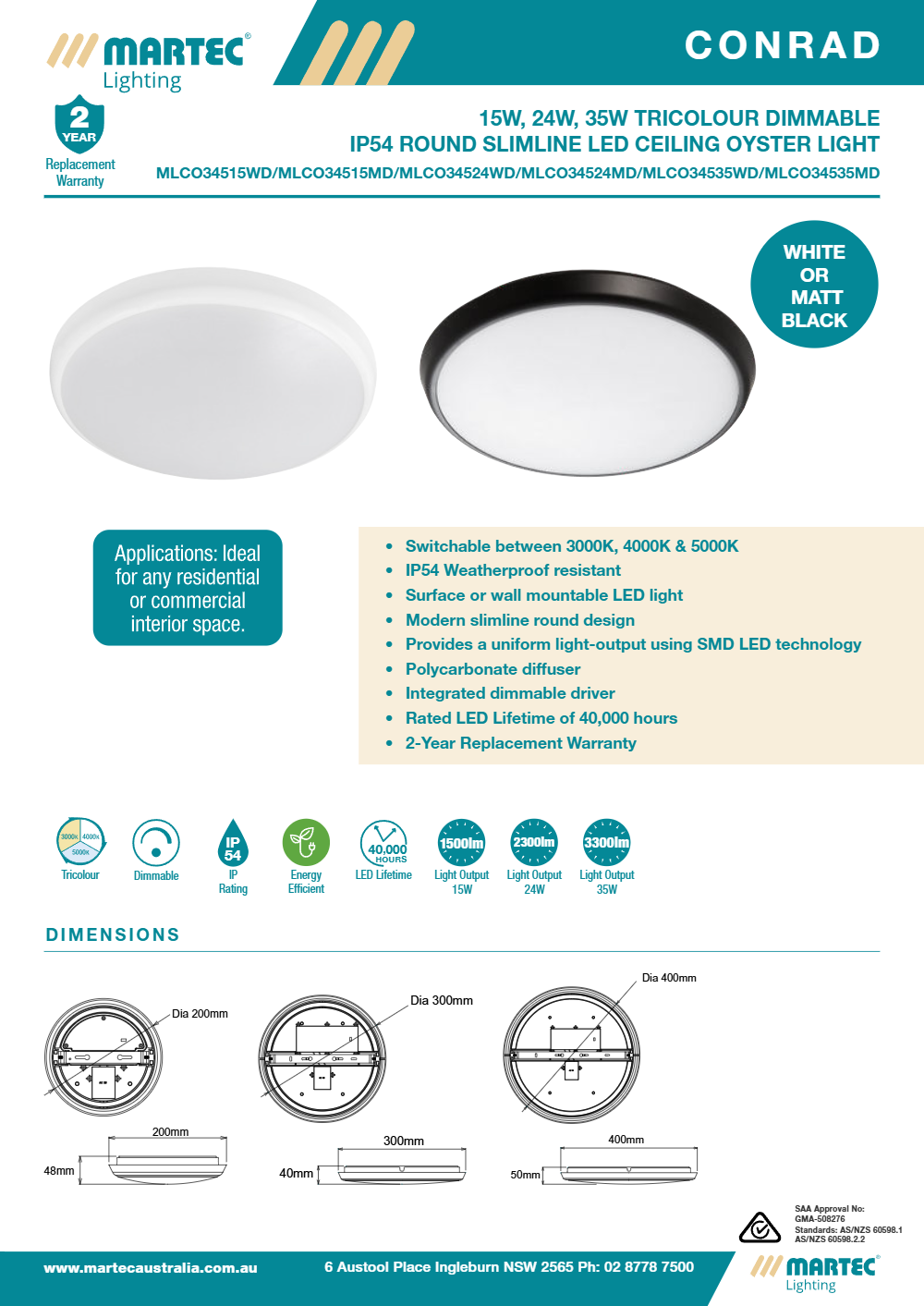 Sleek, stylish, and ultra-versatile — the Conrad oyster light is perfect for both residential and commercial spaces. With a modern slimline design, switchable colour temperature, and three size options, it delivers tailored lighting to suit every room and mood.