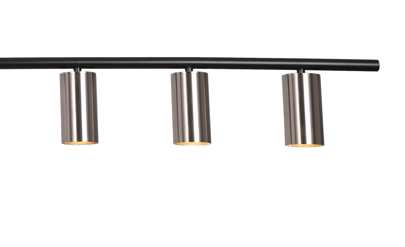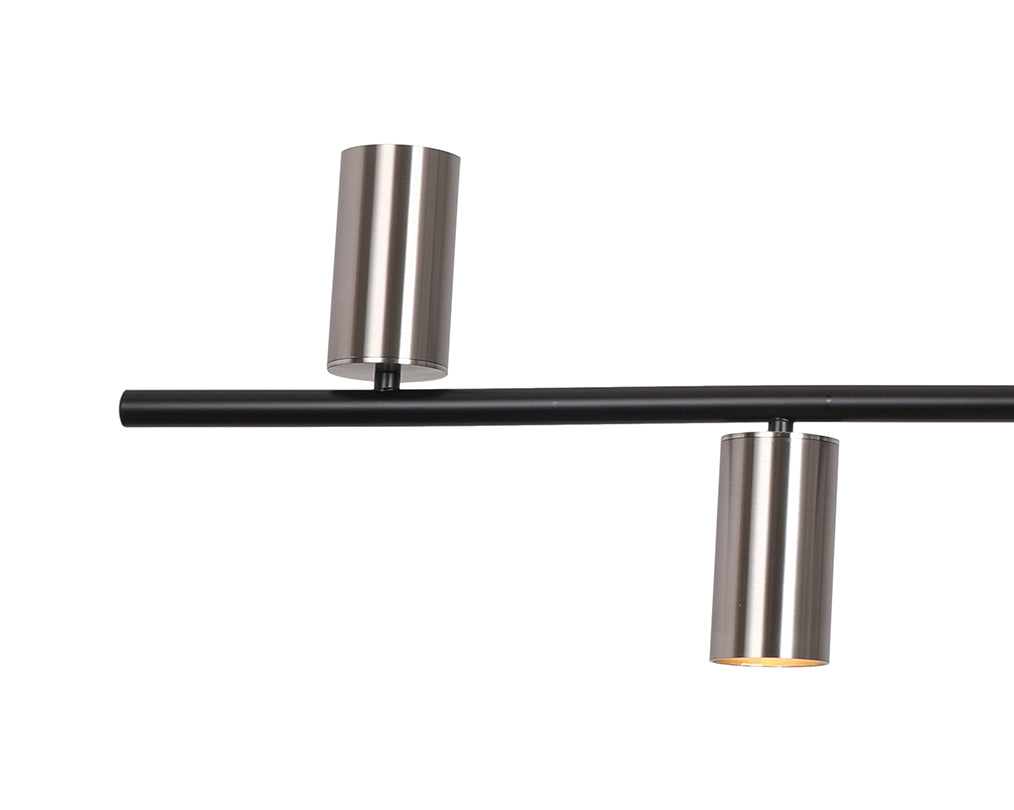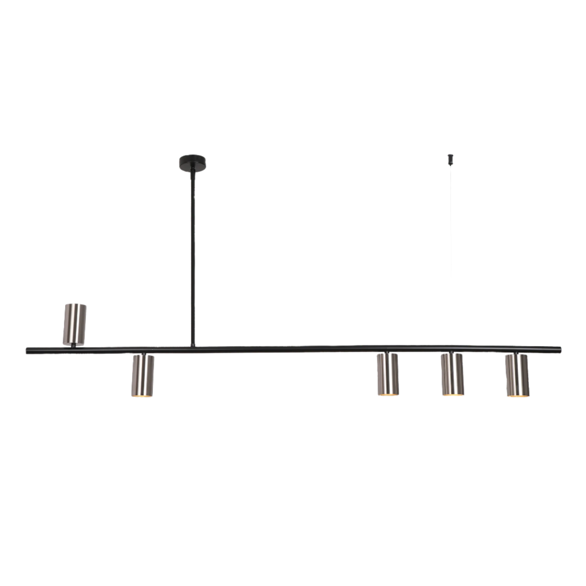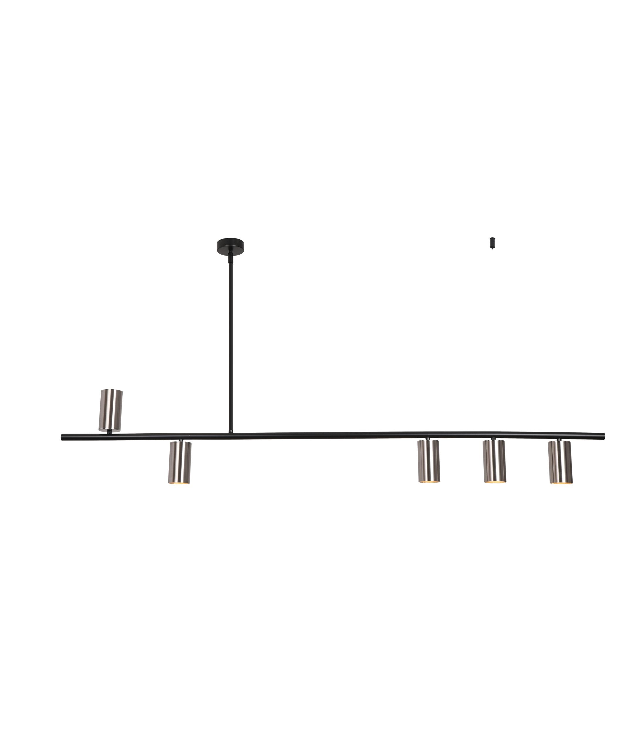 Make a bold statement with this 1.5-meter black linear pendant, featuring 5 adjustable GU10 sockets finished in elegant Satin Nickel.\