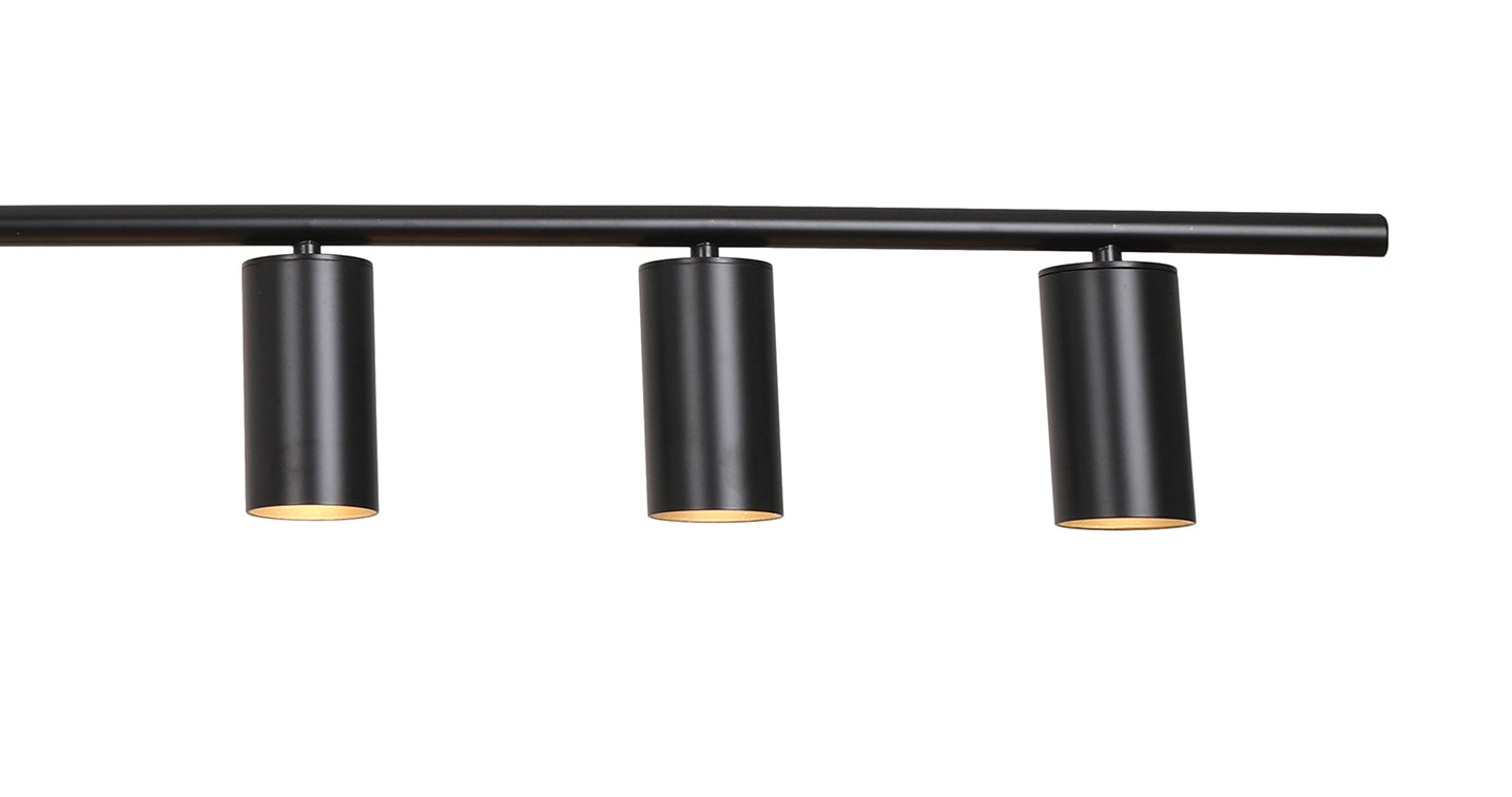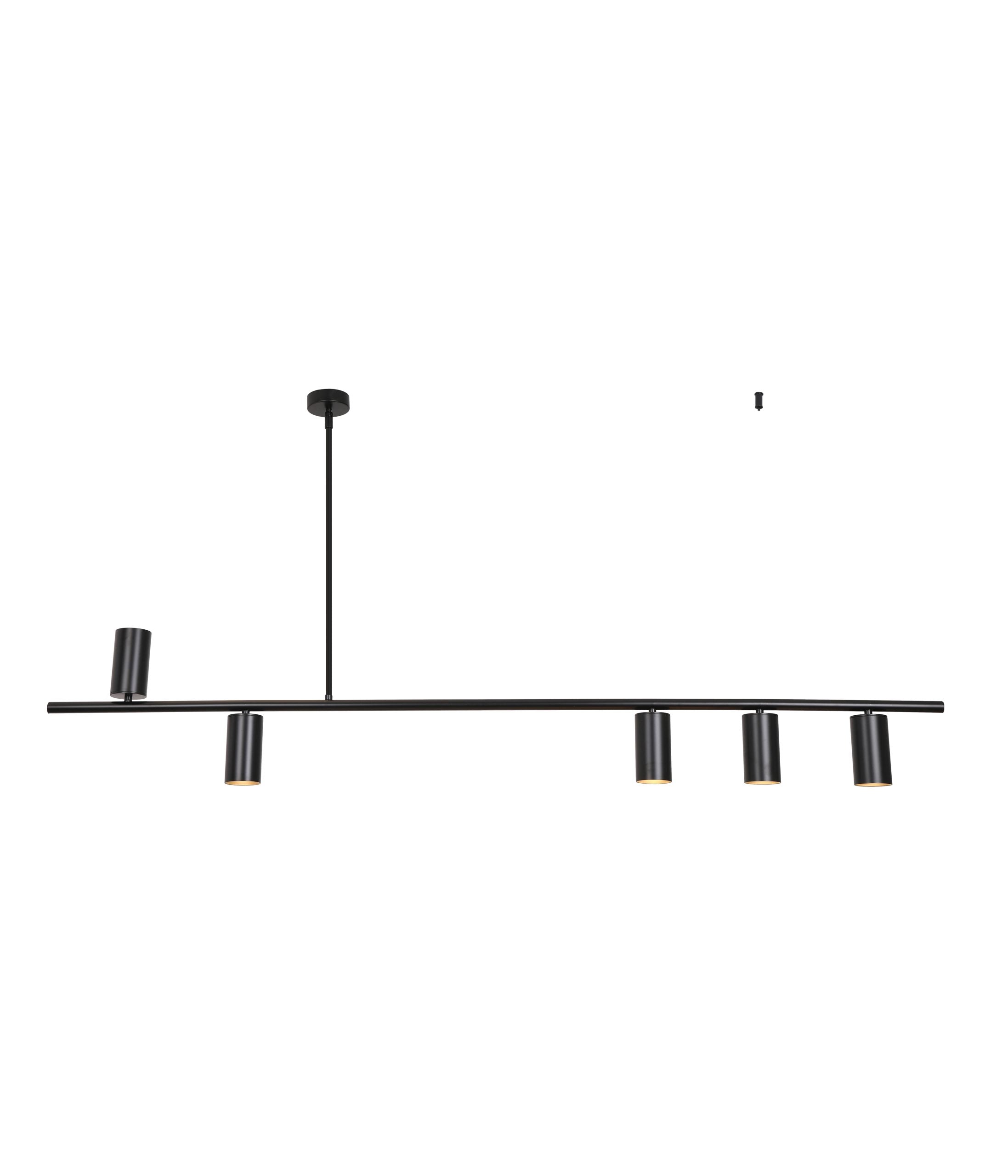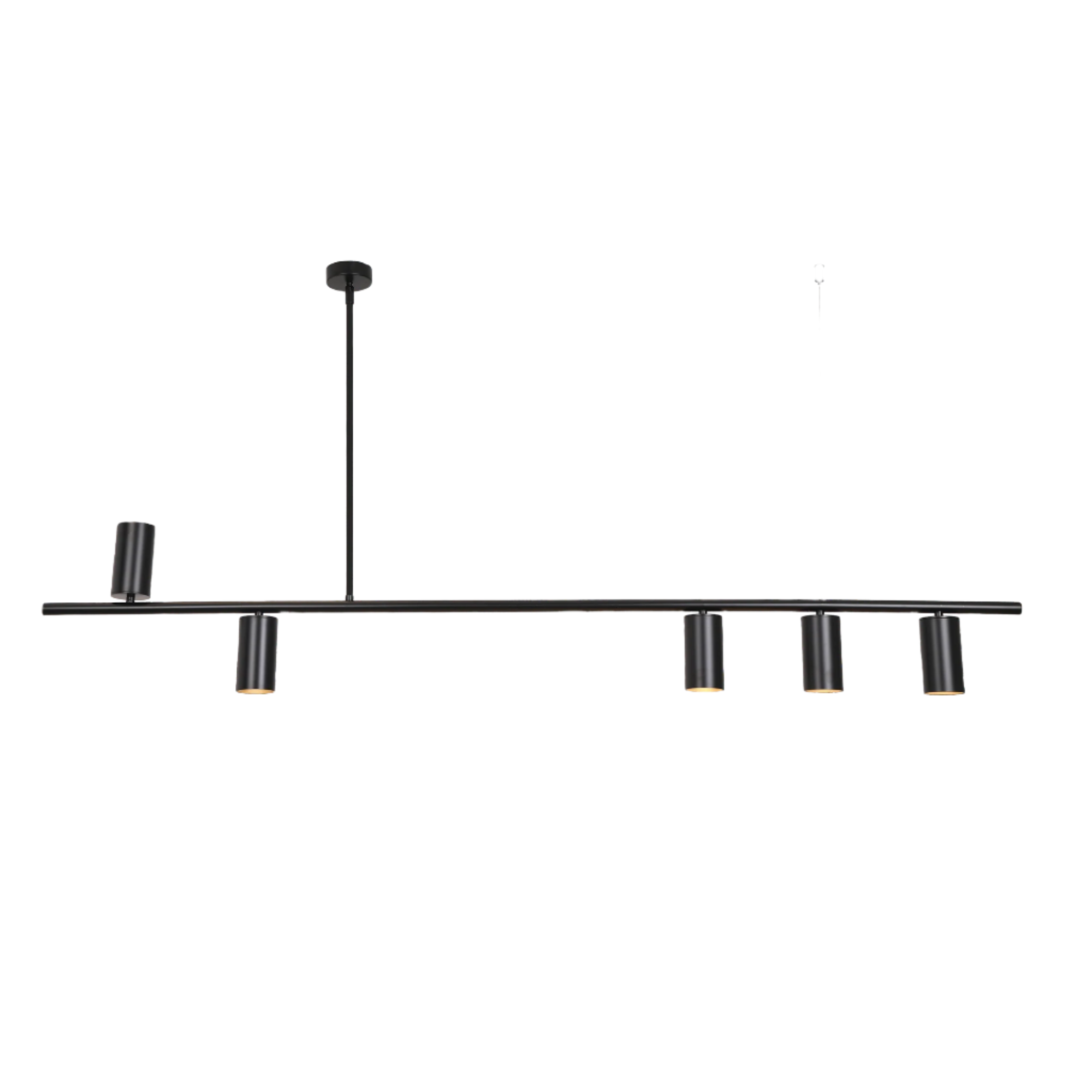 The DELCO 5 BK is a contemporary statement piece, designed with clean lines and a striking matte black finish. Featuring five suspended lamp holders, this minimalist pendant adds industrial charm and bold contrast to modern interiors.