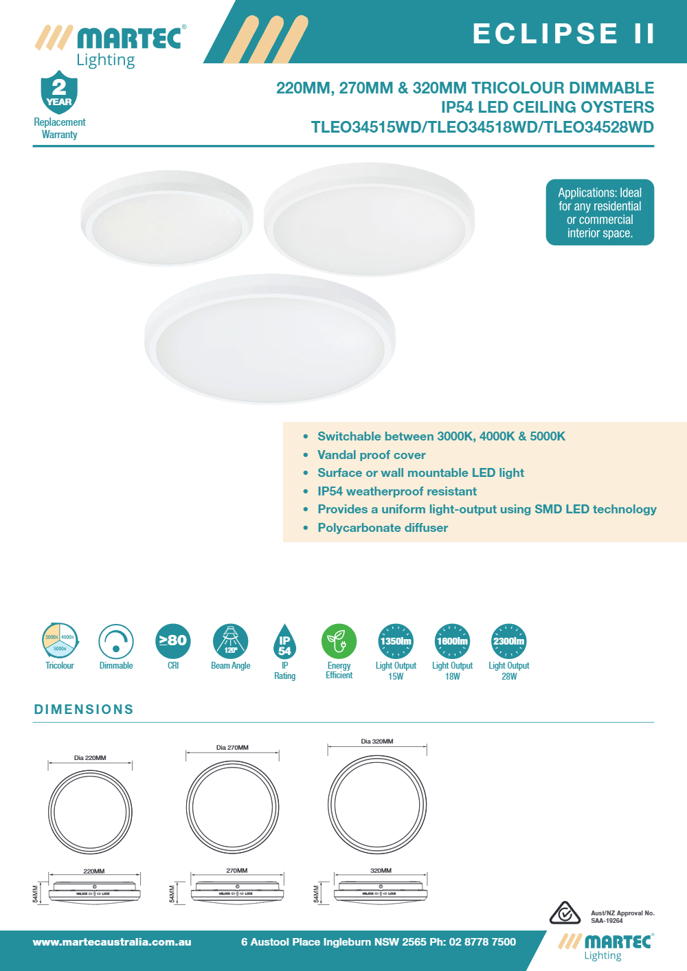 A modern and robust lighting solution crafted for both commercial and residential applications. The Eclipse II combines style with strength—featuring a sleek design, tough construction, and brilliant tricolour illumination.