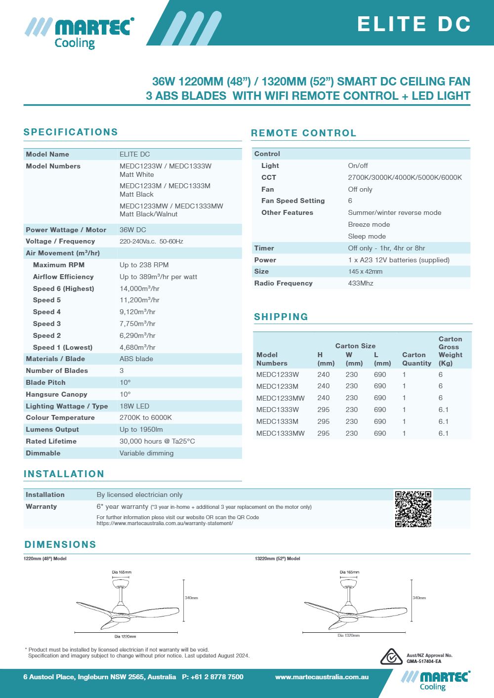 🌀 8-Speed Remote with Comfort ModesIncludes Sleep Mode and Natural Breeze Mode + 6 speed levels for customised airflow.