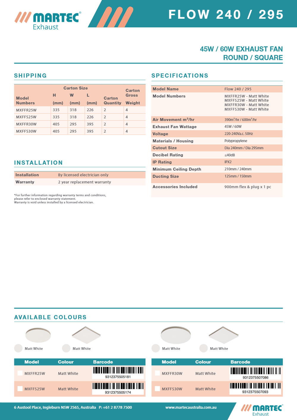 Martec Flow Round or Square Exhaust Fan – Fast Shipping from Lights and Fans Online