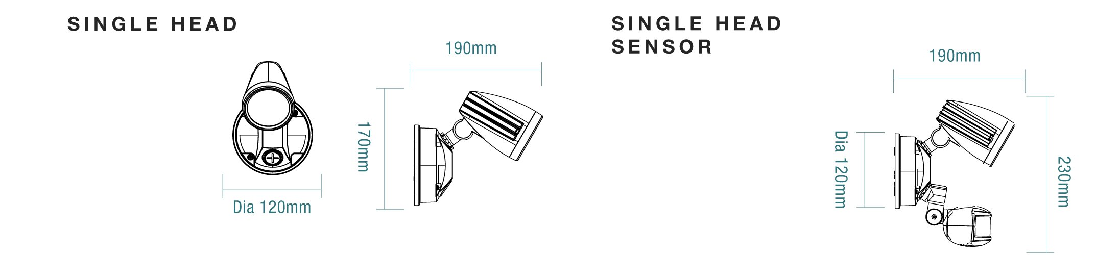 MaterialĀ Die cast aluminium light head / plastic housing / glass light lens