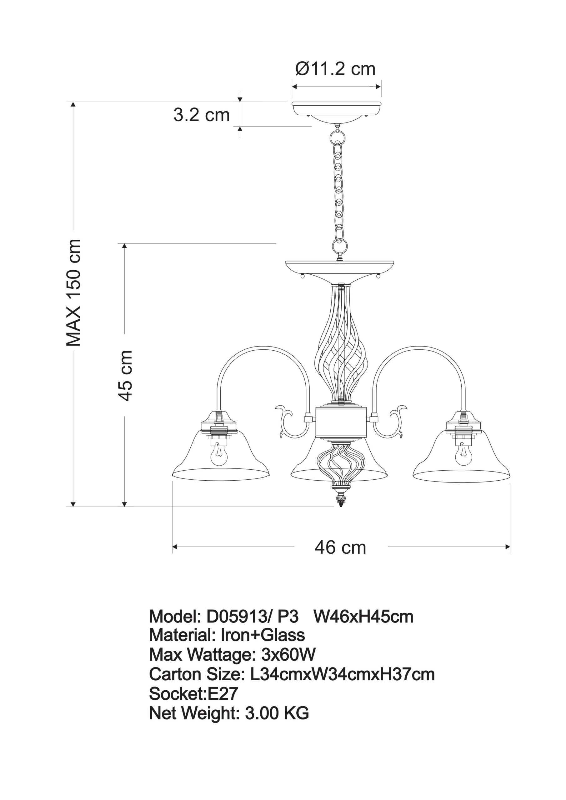 🔹 Single Pendant – 30cm (H) x 30cm (W) 🔹 3-Light Pendant – 45cm (H) x 46cm (W) 🔹 5-Light Pendant – 45cm (H) x 54cm (W)