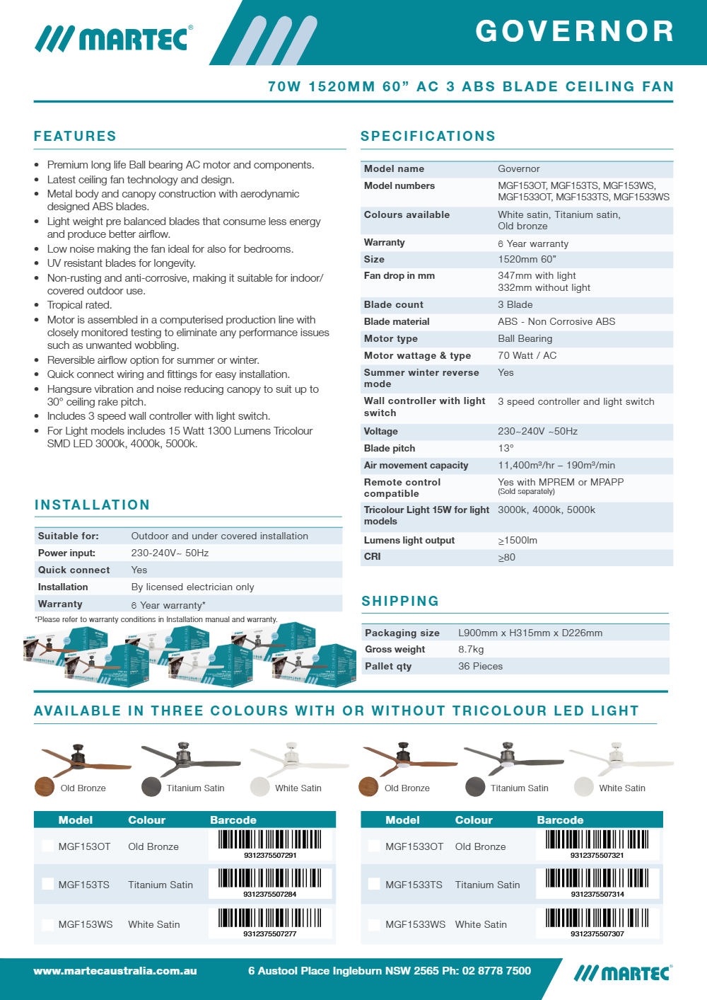 🎛️ Remote Control CompatibleWorks with Martec® remotes (MPREMS, MPLCDS, MPWIFI – sold separately).