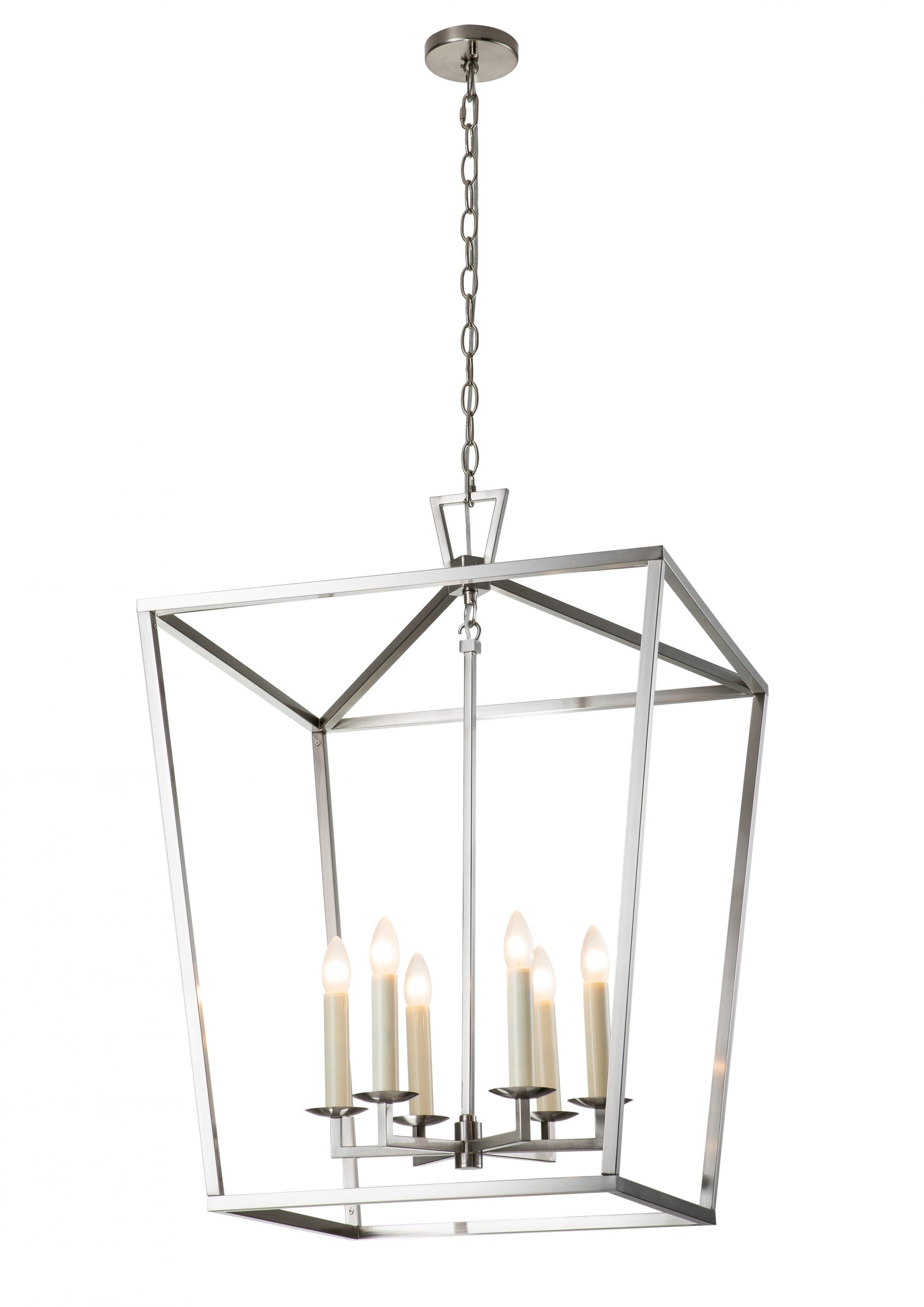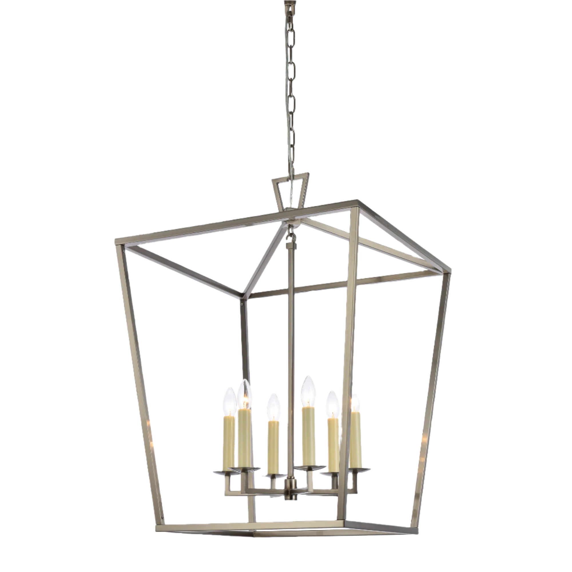 The HUNTLEY COLLECTION brings the warmth and charm of the classic Coach light into your dining room , foyer or living room. Featuring 3, 5 or 6 light styles this sleek clean line meatal frame finished in Satin Nickle compliments any home décor.