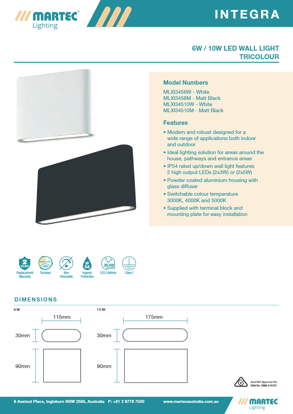 Integra 6W/10W Tricolour LED Up/Down Wall Light