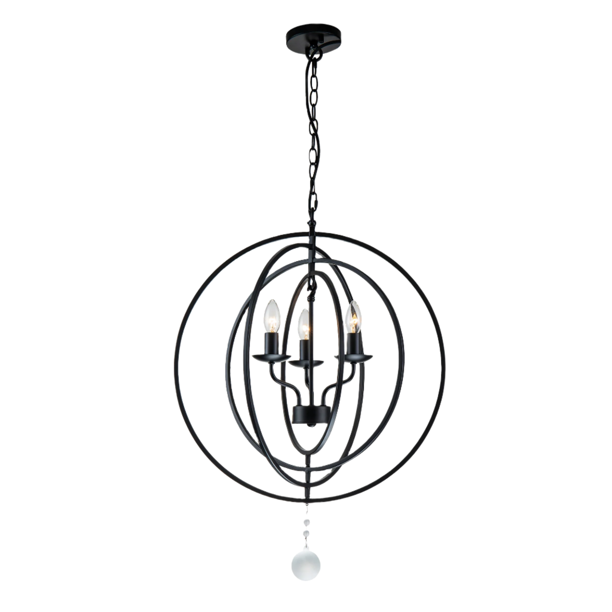 Specification Brand: MDA Lighting Input Voltage :240V Number of globes: 3 Globe Not included Max Wattage :60W Material: Iron Dimension Width: 56cm Height :66cm Chain Length: 2meter Weight: 1.3kg