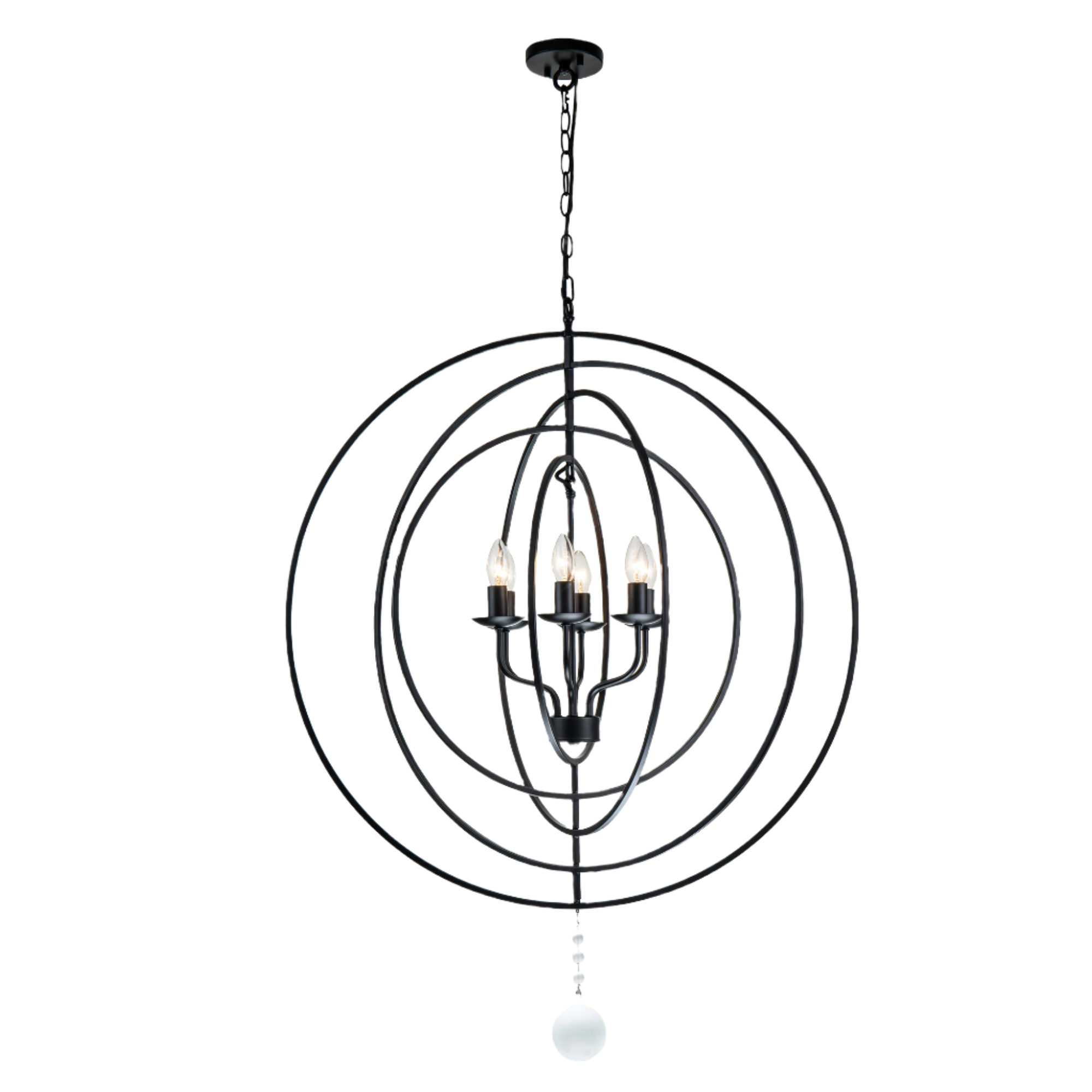 The Maxwell, a modern Orb silhouette. Perfect focal point for Living room, Dinning and entry. With its floating candelabra.