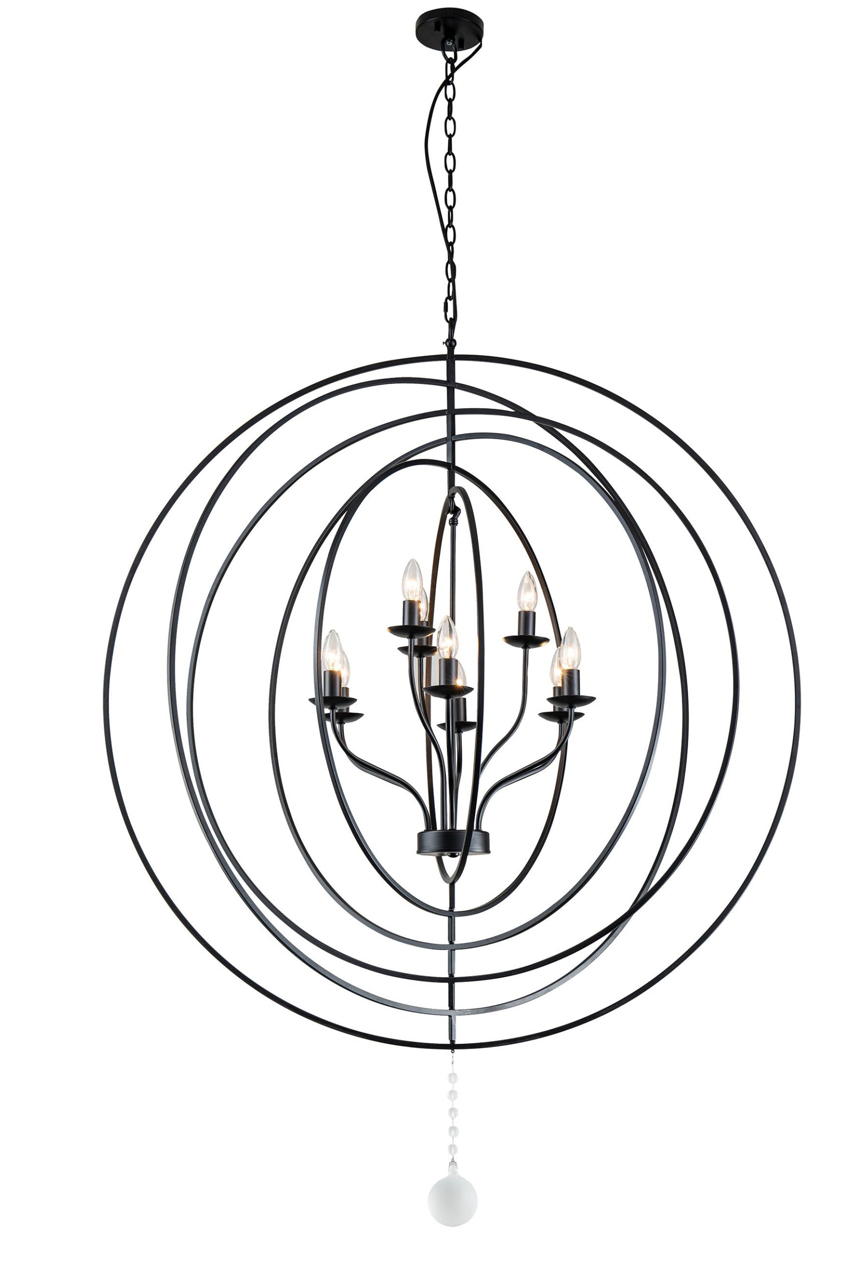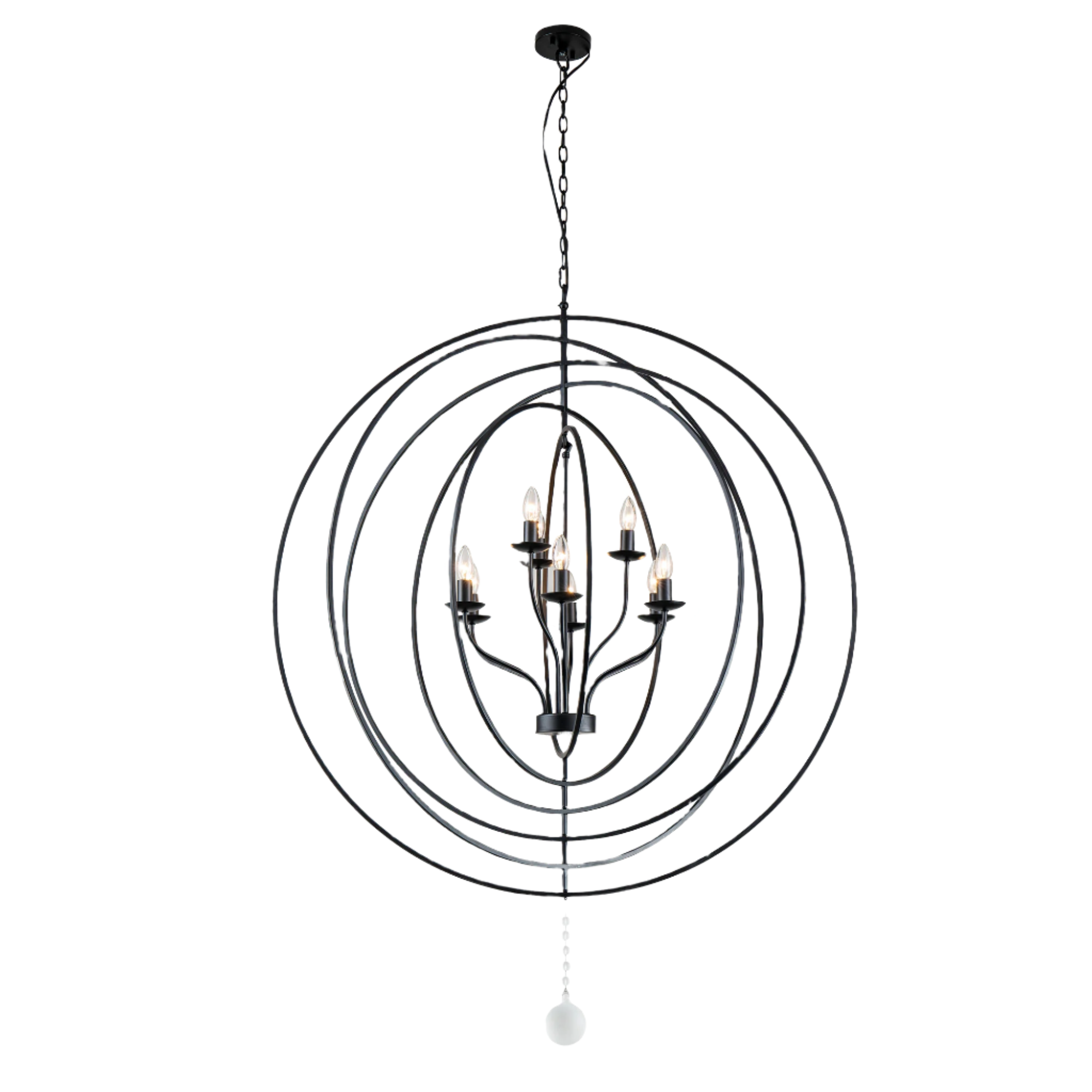 The Maxwell, a modern Orb silhouette. Perfect focal point for Living room, Dinning and entry. With its floating candelabra.