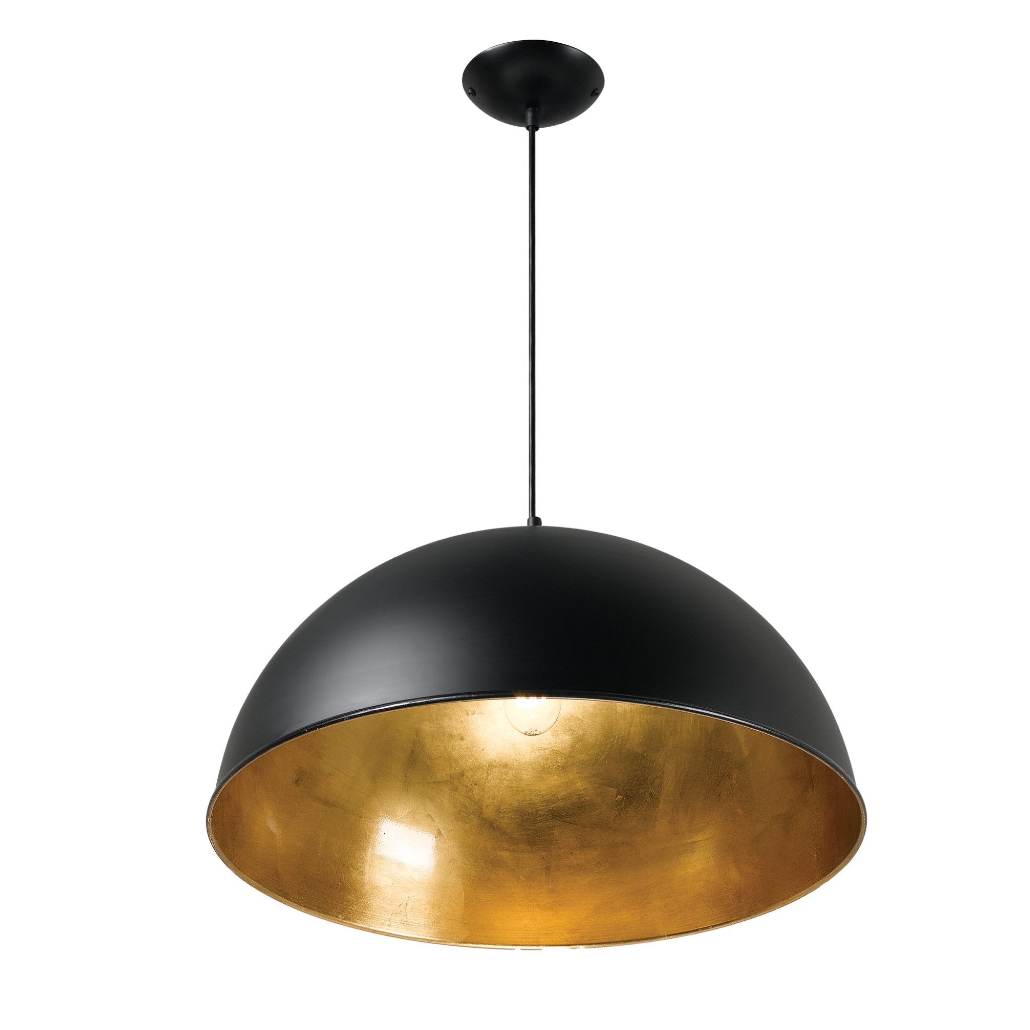 MDA Lighting has re-invented the timeless dome shape introduced in Australia in the 1950s, elevating it with luxurious handcrafted finishes. This Medium-sized dome pendant features a matte black exterior and a hand-applied gold leaf interior, offering a warm, elegant glow.
