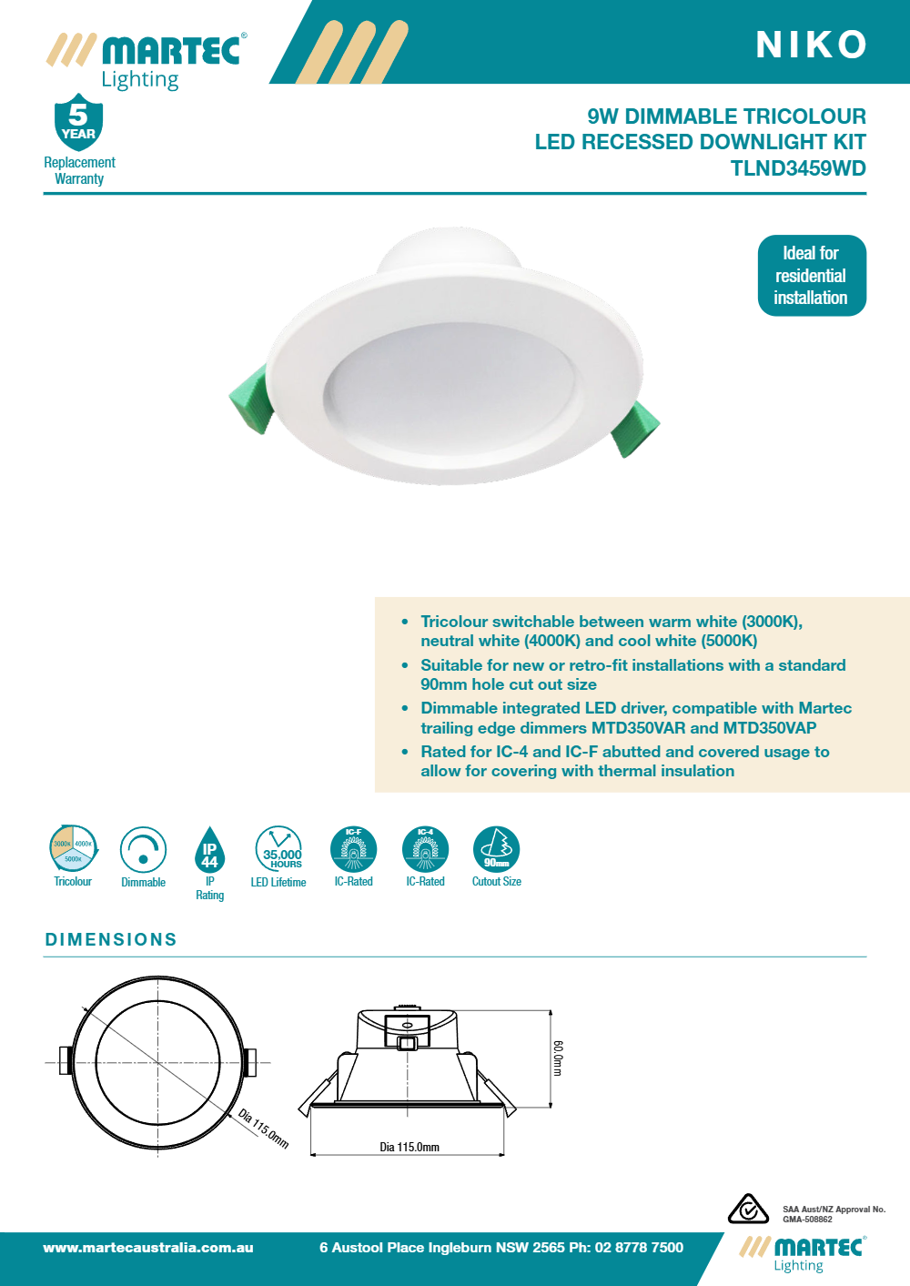 Niko is ideal for any residential installation.Niko stands out as a recessed and dimmable downlight, delivering excellent performance while ensuring easy installation. It proves to be an ideal choice for residential installations, offering a tricolour feature that allows users to select their preferred colour temperature.