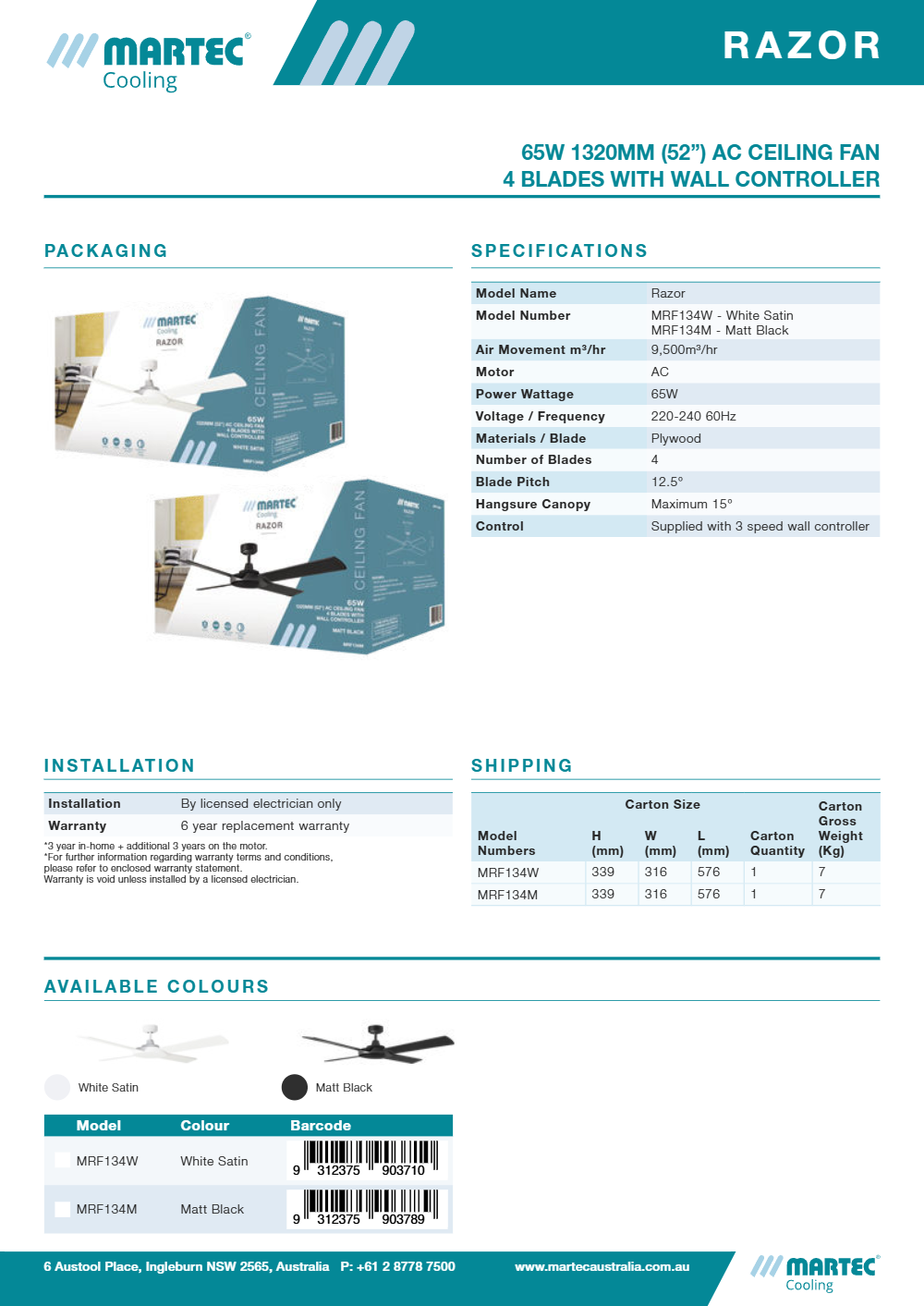 Model Code: MRF134B / MRF134MColours: Brushed Aluminium | Matt Black