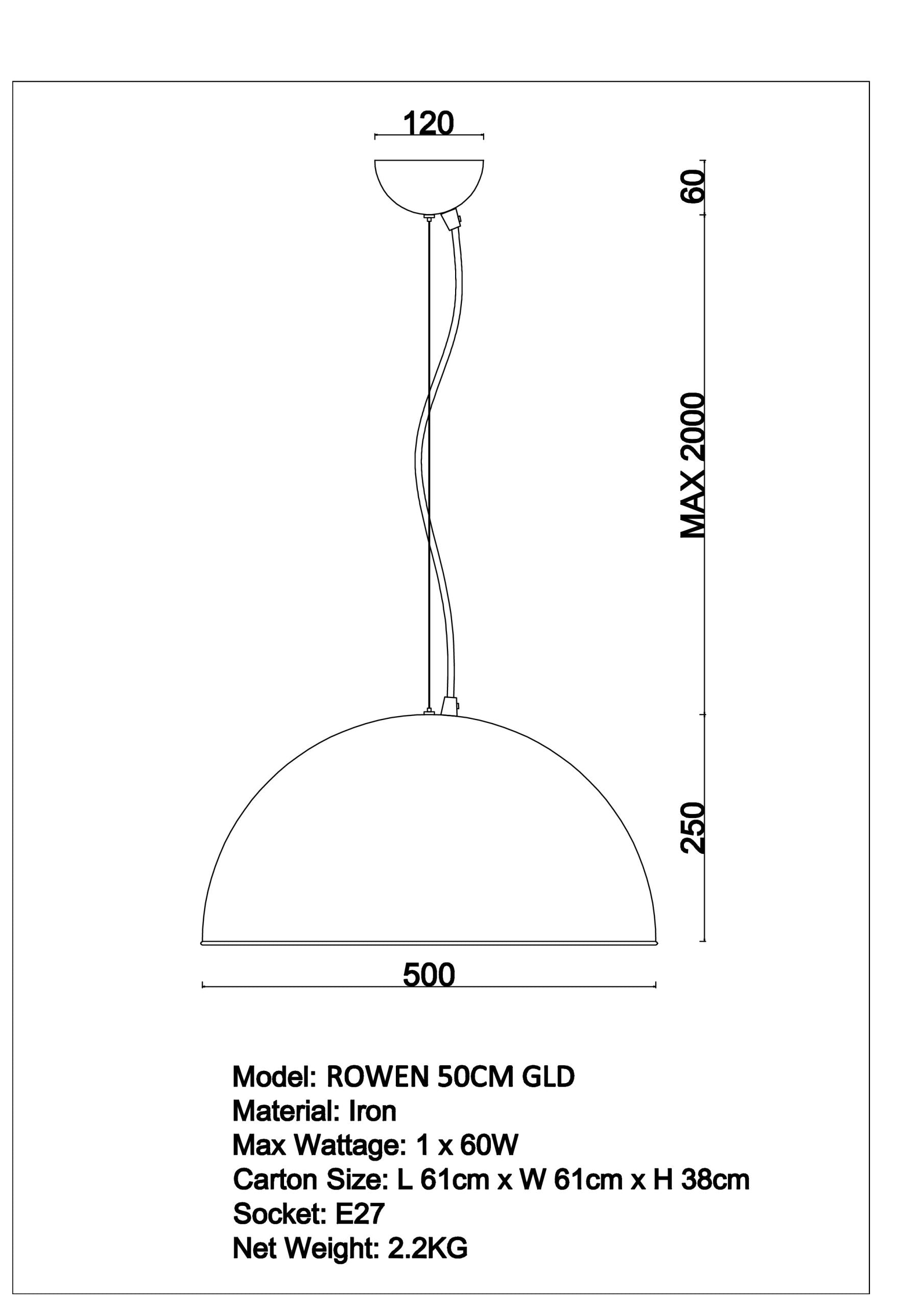 Elevate your interior with the ROWEN pendant, a perfect blend of modern minimalism and luxurious gold finish. With its sleek 50cm form, this pendant becomes the statement piece your kitchen, dining, or living area deserves.