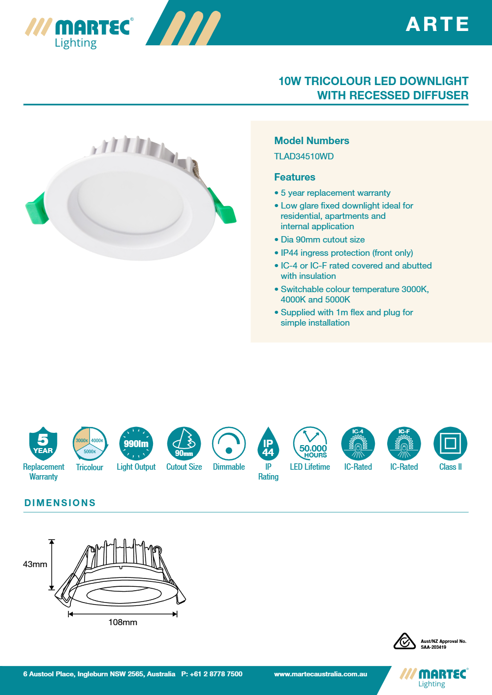 The Arte is a sleek, recessed LED downlight with low glare output and premium performance. Designed for fast installation and long-lasting performance, it’s perfect for residential, commercial, and multi-unit applications.